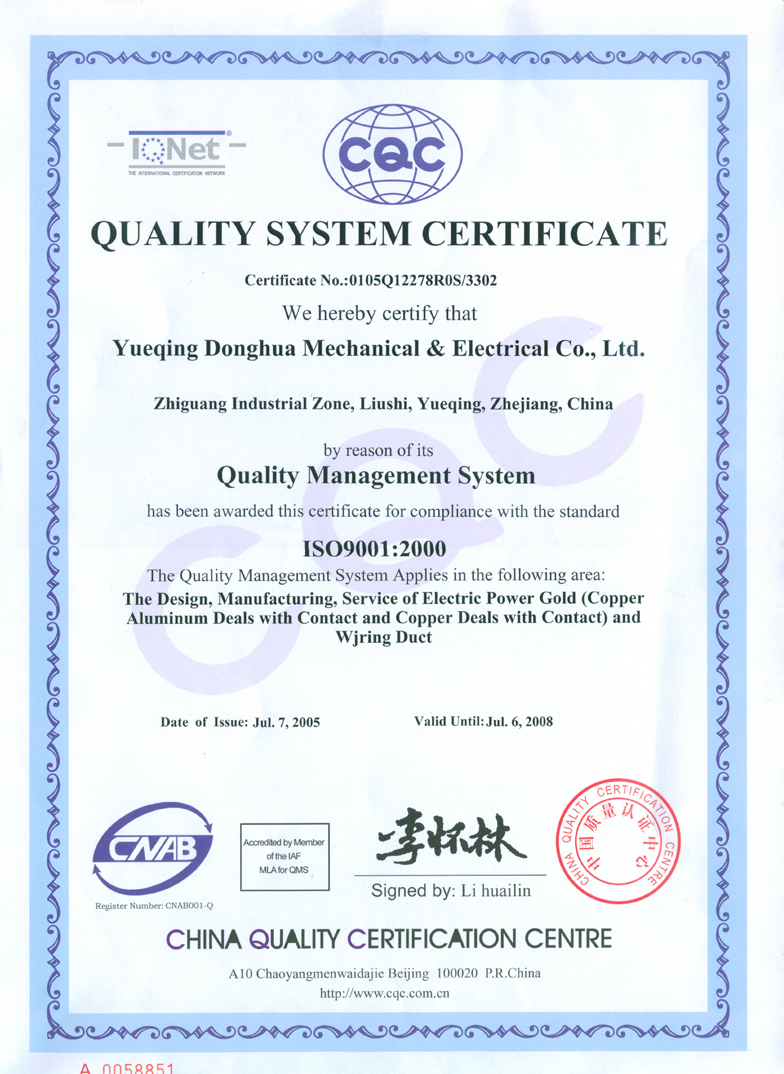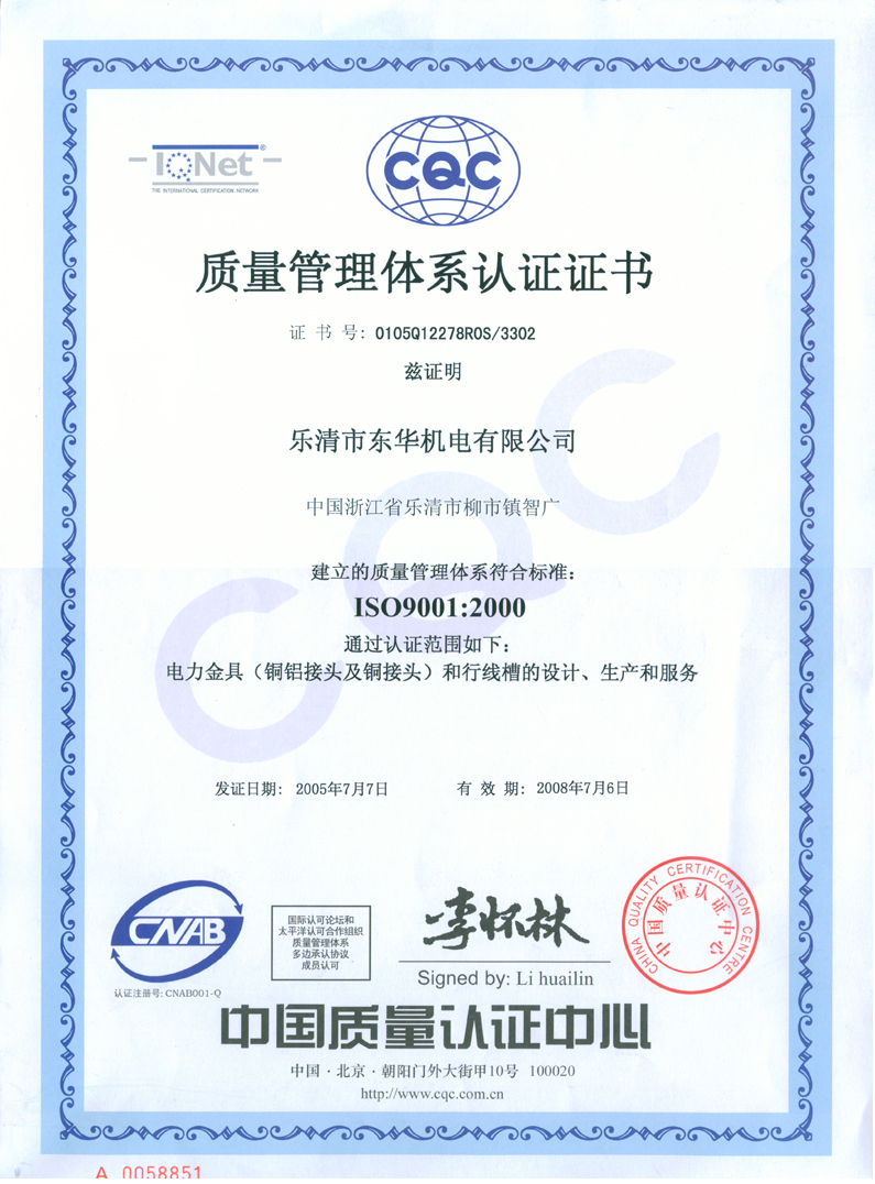 樂清市東華機電有限公司,技術力量雄厚,生產設備先進,本廠榮獲ISO9001國際質量體系認證和有關檢驗部門的認可,本廠生產系列銅、銅鋁、鋁類電力金具,規格齊全。